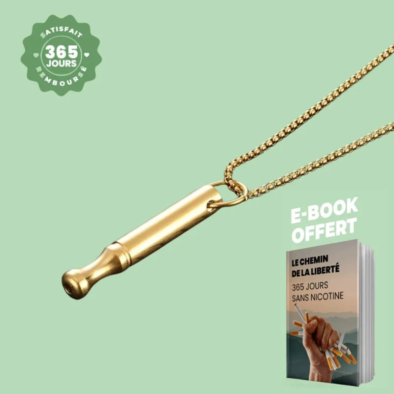 Le collier Libora produit est conçu pour imiter la sensation d’aspirer sur une cigarette.